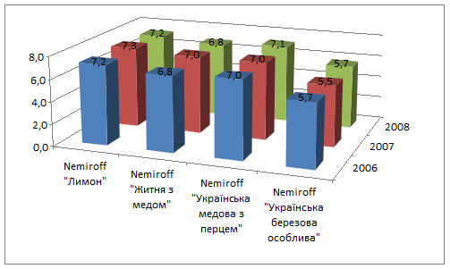 Це свідчить про те, що дане підприємство вже сформувало коло потенційних споживачів, які здатні відрізняти продукцію "Nemiroff" від інших виробників цієї галузі.