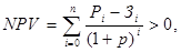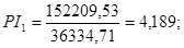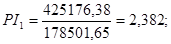 Економічне обґрунтування проектів інноваційного розвитку ґрунтується на розраунку таких показників: чистого зведеного прибутку (NPV), індексу рентабельності (PI), періоду окупності (РР) і внутрішньої норми доходності (IRR). Для вибору найбільш прийнятного проекту критеріями оцінки є оптимізація середньозважених за ймовірностями різних сценаріїв розвитку подій цих показників, для яких оптимальними є: максимальні значення NPV, PI, мінімальне значення РР і перевищення IRR ставки дисконтування. Разрахуємо значення наведених показників за відомими формулами: