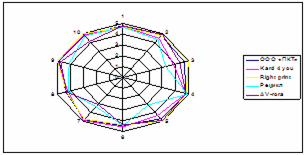На основе результатов анкетирования было проведено конкурентное многопараметрическое позиционирование банков на рынке пластиковых карт методом семантического дифференциала. Был сформирован список из десяти критериев, оказывающих наибольшее влияние на конкурентоспособность типографий. Далее путем анкетирования получены оценки клиентов по этим критериям и рассчитаны коэффициенты потребительской привлекательности. В итоге получились следующие результаты: ООО «ПКТ» Кпп = 4,71, «Kard 4 you» Кпп = 4,57, «Right print» Кпп = 4,76, «Рецикла» Кпп = 4,18, «AV-rora» Кпп = 4,48.