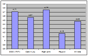 Для более глубокого конкурентного анализа было проведено маркетинговое исследование методом анкетирования. Объем выборки составил 100 респондентов, пользовавшихся услугами типографий, размещающих заказы на пластиковые карты на Интернет-форуме «Принтфорум», а именно Кard4you, Right print, AV-rora, Рецикл и ПКТ. Опрашивались респонденты , пользовавшиеся услугами вышеперечисленных организаций.