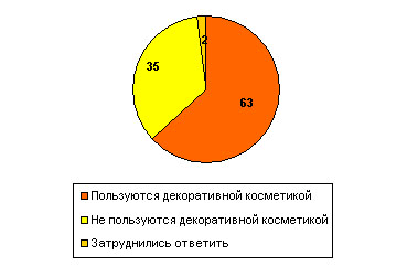 Две трети российских женщин пользуются декоративной косметикой. При этом практически каждая вторая дама (44%) использует косметику каждый или почти каждый день. Значительно меньший процент тех, кто пользуется косметикой от двух до пяти раз в неделю (12%), а также раз в неделю и реже (7%).