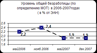 Уровень безработицы в Санкт-Петербурге продолжает оставаться одним из самых низких в стране. На конец 2007 года уровень регистрируемой безработицы составил 0,5% экономически активного населения (0,6% - годом ранее).[4]