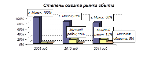 Цель на последующих этапах развития - это постараться захватить своей продукцией в 2010 году 85% существующего рынка г. Минска, а также 15% рынка Минского района, а в 2011 году еще и 5% рынка Минской области.
