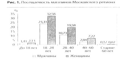 Для наглядности можно привести пример самой простой корреляции возраст — пол - "Посещаемость магазинов Московского региона" (рис. 1).