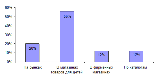Так, проведенное исследование позволило сделать вывод о том, что большинство покупателей предпочитают приобретать обувь для своих детей в магазинах, поэтому работа обувного магазина с выделенным детским ассортиментом является весьма рентабельной.