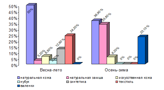 Анализ структуры ассортимента и экспертиза качества женской кожаной обуви
