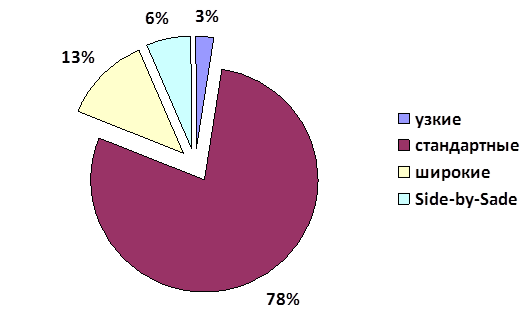 - холодильники Side-by-Side (двусторонние) (180; до 100; 60…80).