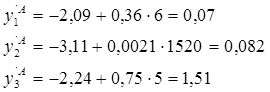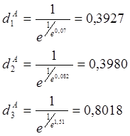 Далее рассчитываем частные показатели желательности для показателя качества изделий А и Б по формуле (1):