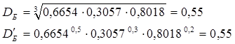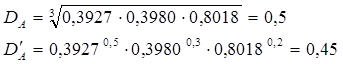 В результате обобщенные показатели желательности по формулам (2) и (3) равны: