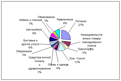 Рисунок 4. – Структура расходов представителей целевого сегмента №1 на месяц (по данным отдела статистики и личных наблюдений)