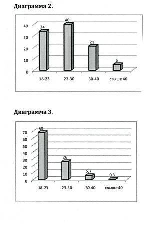 На рассматриваемом нами рынке основными критериями сегментирования являются: возраст (таб.1) и пол (диаграммы 1-3). Анализ рынка представлен в таблице 1.