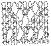 Ажурные полотна отличаются наличием просветов (ажура) или полупросветов разной формы, образованных за счет переноса петель с одной иглы на соседнюю и т. д. У одинарного ажурного трикотажа на базе глади (рис. 12) перенос петель осуществляется на отдельных иглах игольницы строго по узору. Это способствует уменьшению распускаемости при одновременном сокращении растяжимости полотна. Их используют при производстве капроновых чулочных изделий. К двойным ажурным полотнам относят накладной полуажур, ажурный интерлок и ажурный ластик.