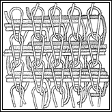 Шарме , или четырехигольное трико (рис. 20), получают при сдвиге гребенки нитеводителей на три иглы, в результате чего протяжки соединяют первый и четвертый петельные столбики. Шарме имеет такие же свойства, что и сукно, но несколько тяжелее и толще, а внешний вид лучше.