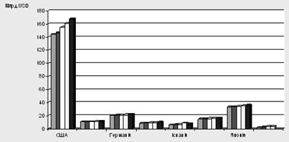 Рис. 1.1. Провідні світові рекламні ринки й місце України на ринку реклами в 2003 - 2008 роках.