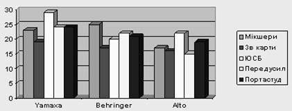 Проведений аналіз показував, що найбільш якісні апаратури для професійної звукорежисури випускається фірмою Yamaxa, однак вибираючи такий важливий компонент звукорежисерської роботи як мікшерний пульт, має сенс звернутися до продукції фірми Behringer.