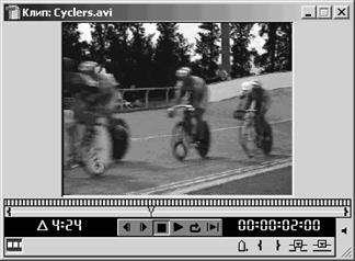 2. Злегка збільшемо тривалість кліпу Cyclers.avi, зміщаючи його праву границю вправо, щоб вона небагато (наприклад, на 1 сек) перекривалася із кліпом Fastslow.avi.