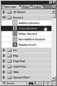 4. У палітрі, що з'явилася, Transitions (Переходи) клацнемо на трикутній кнопці, що розвертає папку Dissolve (Розчинення ) (мал. 2.17).