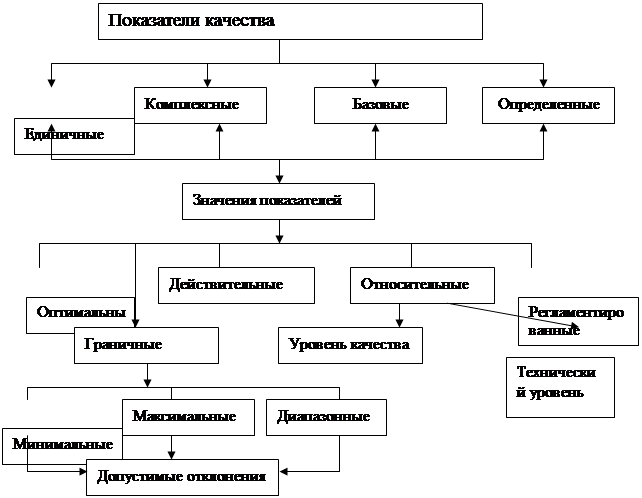 Различают показатели фактические, базовые и относительные. Фактический показатель- это конкретный единичный или комплексный показатель, установленный для данного товара. Базовый показатель- это показатель принятый как исходный при сравнении с фактическим при оценке качества. Относительный показатель характеризует соотношение фактического и базового показателей.
