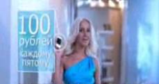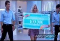 | Камера снимает девушку, которая поднимается на эскалаторе. Камера установлена наверху этой платформы. По мере того, как поднимается девушка, камера поднимается вверх. На фоне этого торгового центра появляются призы – 10 мобильных телефонов, 100000 рублей, 100 рублей на мобильный. |