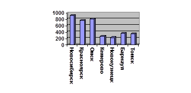 Рис. Объемы ввода жилья в ключевых городах Западной Сибири в 2008 г., тыс. кв. м.