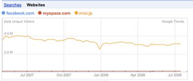 Итак, основные конкуренты «Вконтакте» на рынке социальных сетей Японии: Facebook, MySpace и Mixi.