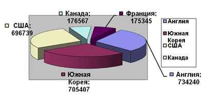 Исходя из Рисунка 1, следует сделать вывод, что больший поток туристов в Индию в 2006 г. был из Великобритании (т. к. Индия прежде являлась колонией этой страны), а также Республики Корея, Канады, США и Франции, что, в общем, и составляет основную массу туристов, прибывших в Индию в 2006 г. Хотелось бы отметить, что Россия не входит даже в первые 15 стран по посещаемости Индии, это, безусловно, связанно с дороговизной туров для русских туристов.