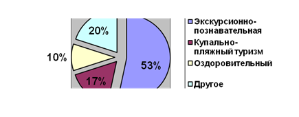 Анализируя ситуацию на туристском рынке, можно сделать вывод, что туристы предпочитают краткосрочные поездки, продолжительность которых 7-15дней (58% туристов). 24% туристов совершают поездки продолжительностью 15-30 дней. Но так же есть и такой контингент туристов, которые выбирают длительные поездки, и процент этих туристов не мал – 18% [5].