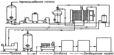 Для пастеризации молока используются пастеризационно-охладительные установки для кисломолочных продуктов, в которых можно проводить пастеризацию с необходимой выдержкой и последующим охлаждением до температуры сквашивания. Подогретое молоко направляется сначала в сепаратор-нормализатор, а затем - на гомогенизатор.
