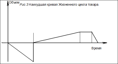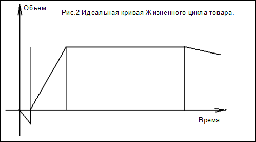 На рисунке показана традиционная кривая жизненного цикла товара. Она описывает отчетливые периоды внедрения, роста, зрелости, насыщения и спада. Существуют также идеальная кривая (рис.2) и наихудшая кривая жизненного цикла товара (рис.3) ( Приложение Д)
