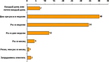 По оценке специалистов ROMIR Monitoring, представители некоторых социальных групп употребляют макароны чаще остальных, т.е. каждый день или 2–3 раза в неделю, – это служащие без высшего образования, военнослужащие и студенты (см. рис. 3):