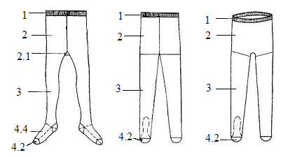 Под термином «конструкция колготок» имеется в виду совокупность особенностей каждой модели: наличие или отсутствие ластовицы, полная или частичная формовка стопы, ширина пояса, высота талии, типы швов на мыске и торсе и т.д. Особенности конструкции оказывают большое влияние на качество женских колготок и их ассортимент. Традиционно колготки состоят из торса, бортика, ластовицы, паголенка, следа, мыска и пятки (рисунок 1.2).
