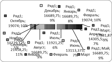 Во второй главе «Определение затрат в звене Снабжение» был рассчитаны общие затраты, которые складываются из затрат на содержание, транспортно-заготовительных расходов и затрат на «омертвление» капитала. Наибольшие затраты на содержание сырья, материалов и покупных изделий полуфабрикатов были осуществлены в сентябре (15949,00). Транспортно-заготовительные расходы зависят от размеров партии поставки, а следовательно, от объема выпуска продукции. Поэтому наибольшие транспортно-заготовительные расходы приходятся в сентябре, где выпуск продукции составляет 1800 штук.