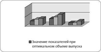 На рисунке 21 видно, что максимальная выручка и прибыль от реализации продукции достигается при оптимистическом объеме выпуска. В то же время, минимальная себестоимость на выпуск всей продукции, достигается при оптимальном объеме выпуска.