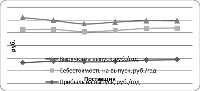 В результате табличных расчётов и из графика, можно сделать вывод, что оптимальным поставщиком для ОАО «ДОМ» является Тула и Ярославль. Так как при этом варианте итоговая прибыль предприятия максимальна, а недополученная прибыль – минимальна и составляет 614,611тыс. руб./год, тогда как в других вариантах возможные потери на порядок выше.