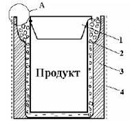 Рисунок 2 – Транспортировка охлаждённых продуктов с применением гранулированного льда: 1-дверца; 2-охлаждаемая ёмкость для льда; 3 - изоляция; 4 - смягчающий материал при трении.