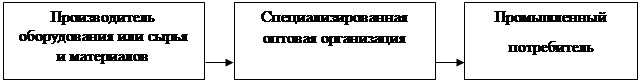Указанная схема сбыта имеет свои особенности в зависимости от группы товаров. Например, обеспечение предприятий сырьем, происходит на основе заключения договоров на поставки между предприятиями и заводами-изготовителями или предприятиями, производящими сырье, напрямую либо через оптовые специализированные предприятия (рис.1.2).