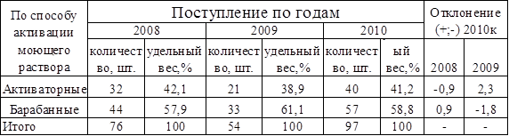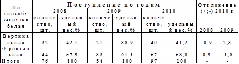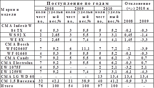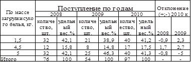 2.3 Анализ структуры торгового ассортимента стиральных машин, поступивших в Гродненское райпо за 2009-2010 годы
