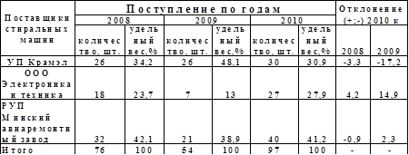 В условиях становления рыночной экономики и обостряющейся конкуренции Гродненское райпо пытается выйти из кризиса. Были приняты ряд мер одной из которых является расширение ассортимента поставляемых стиральных машин. Договора с поставщиками данных товаров теперь заключается не только с поставщиками - изготовителями, но и посредниками, особенно по товарам не выпускающимися на территории Республики Беларусь.