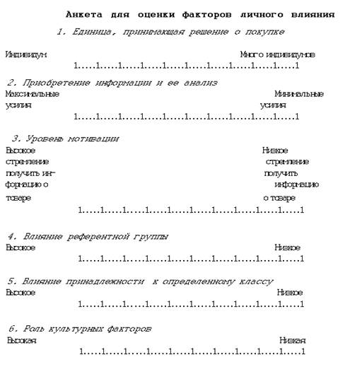 Таблица 1.1. Анкета для оценки факторов личного влияния [3]