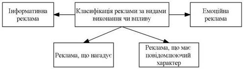 Рисунок 1.3 – Класифікація реклами за видами виконання чи впливу