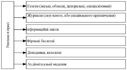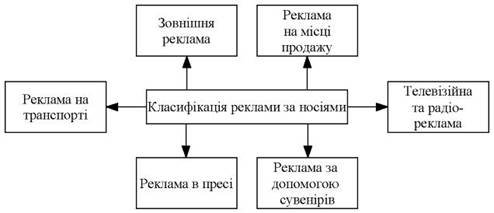 Рисунок 1.4 – Класифікація реклами за носіями
