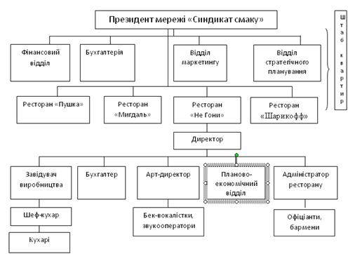 Предметна спеціалізація основного виробництва здійснюється не лише у напрямах "піцца, бутерброди, борошняні вироби, страви з курки, січеного м'яса”, але й у напрямах "екзотика, морепродукти, вегетаріанство, релігія, дієта, здоровий спосіб життя" тощо. Цей ринок представлено такими підприємствами, як "American Pizza", "Chelen-tano", "Express pizza", "Арлекіно", "Везувіо-піца", "Рондо-піца", "Портофіно", "McDonalds", "МакСмак", "Швидко", "Ростік'с", "Посейдон", "Венеція", "Золотий берег" тощо. Ресторани, які створилися упродовж останніх п'яти років, умовно можна поділити на три групи: національні (у повному обсязі представлена національна кухня народів світу; інтер'єр включає елементи національного декору, етнічні предмети вжитку); з предметною спеціалізацією, швидкого обслуговування; тематичні (або концептуальні, тому що створювалися "під ідею", за певною концепцією); без чіткого спрямування. На ринку ресторанної індустрії поступово з'являються мережі, серед яких найбільш впливовими є: "McDonalds"; "UncleSamGroup"; "XXI століття", "Альянс". Характерними ознаками цих мереж (за кордоном вони мають назву "ланцюги") є відкриття та експлуатація підприємств ресторанного господарства національного, тематичного спрямування та підприємств швидкого обслуговування. Мережа "XXI століття" активно завойовує останніми роками ринок швидкого обслуговування і конкурує з мережею "McDonalds". Заклад харчування з брендом - "народний ресторан самообслуговування "Швидко" - з цієї мережі посів одне з перших місць серед підприємств швидкого обслуговування у так званій торговельній зоні "чорний квадрат" установ "Метроград". Специфічною рисою цієї зони є її місце розташування : підземні торговельні майдани (площа Січневого повстання, Льва Толстого, бульвар Дружби народів, Привокзальна площа, майдан Незалежності). Правильно вибрана маркетингова політика і стратегія розвитку розкриває значний потенціал підприємства "Швидко". На сьогодні підприємства і мережі об'єднуються у громадські організації. Так, у м. Києві створена і успішно функціонує Київська гільдія рестораторів. Це громадська організація, яка об'єднує столичних рестораторів та ресторанних постачальників. Основними напрямами її діяльності є: проведення професійних, ресторанних асамблей, навчання персоналу, інформаційне та консультаційне обслуговування, створення фірмового стилю та виготовлення різноманітної друкованої продукції для ресторанів, кафе, барів, нічних клубів, казино, більярдних тощо [17].