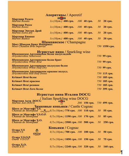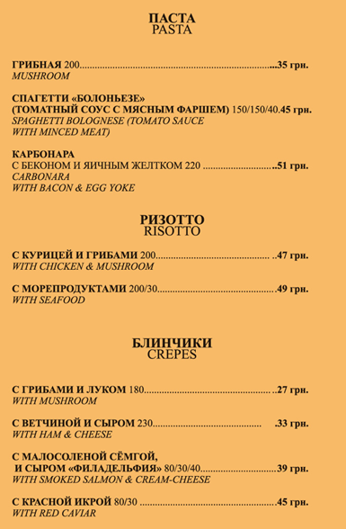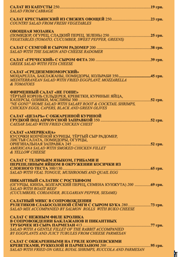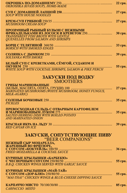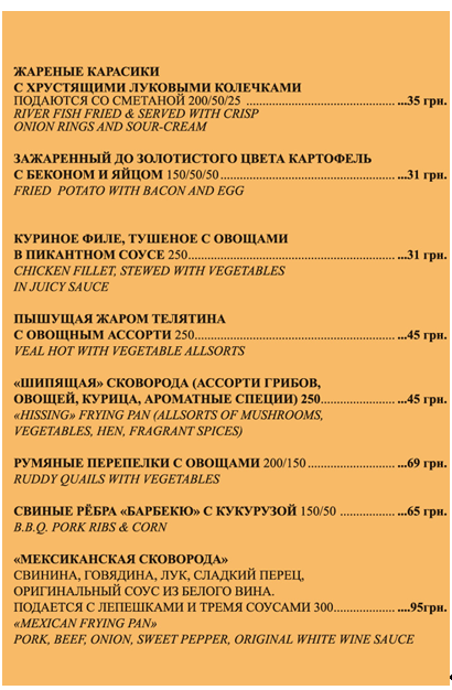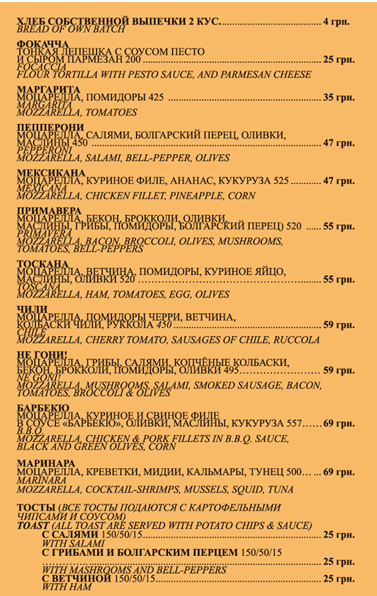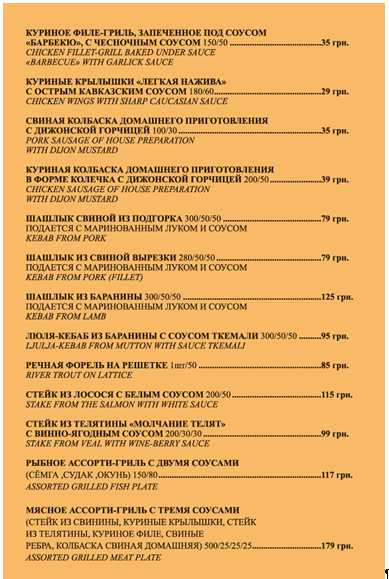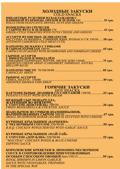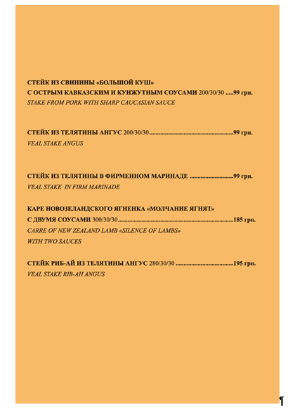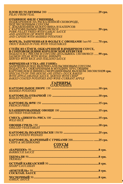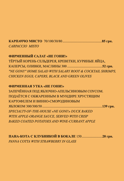 ОСНОВНЕ МЕНЮ РЕСТОРАНУ «НЕ ГОНИ»
