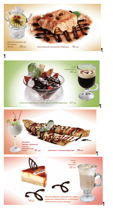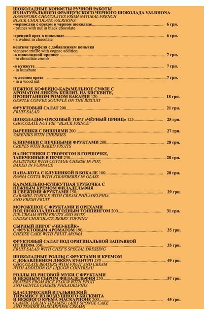 ДЕСЕРТНЕ МЕНЮ РЕСТОРАНУ «НЕ ГОНИ»