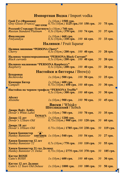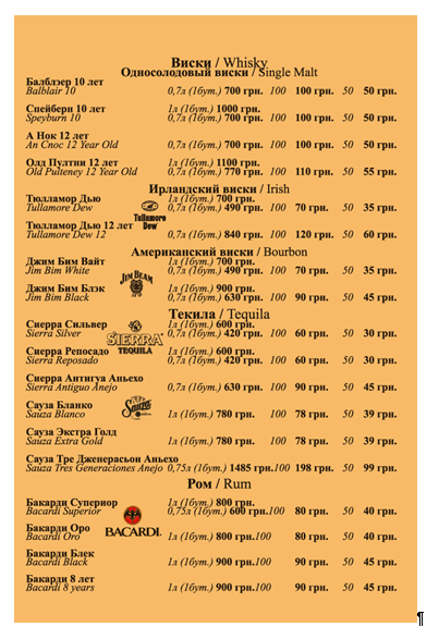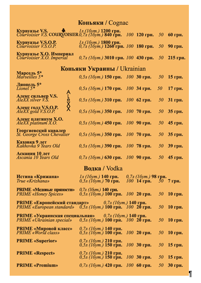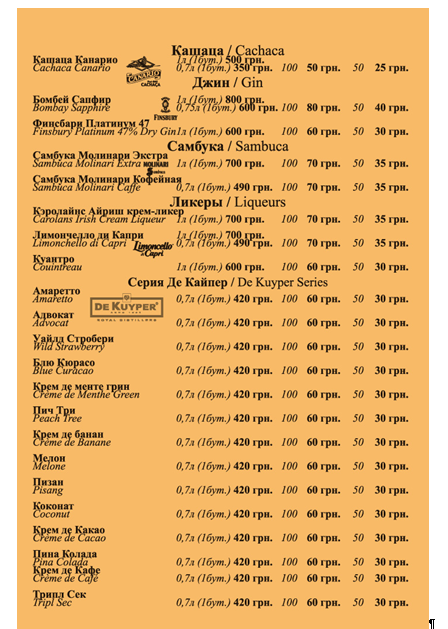 КАРТА НАПОЇВ В РЕСТОРАНІ «НЕ ГОНИ»