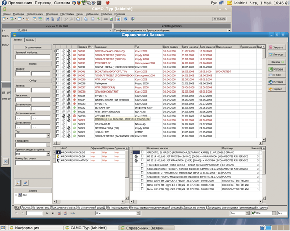 За допомогою програмного комплексу " САМО-incoming" відбувається спілкування між партнерами через Інтернет, автоматизується процес прийому туристів: створення бази по цінам готелів; формування цін-брутто і заявок; створення рахунків та ваучерів та контроль за ними; організація трансферів, облік гідів та водіїв; продаж екскурсій та інше. [15, ст.98] (Додаток Е).