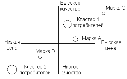 Рис. 1. Типичный пример позиционирования товара с учетом кластеров потребителей
