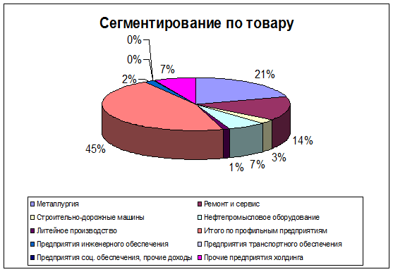 Так как у предприятия в России нет конкурентов, то рассмотрим сегментирование только по производимой продукции.