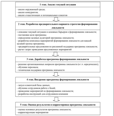 Рассмотрим процесс создания лояльности с помощью схемы, приведенной на рис. 1, а также основные этапы внедрения программы лояльности.
