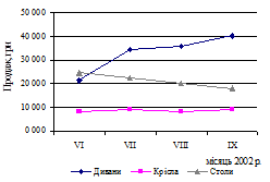 Рис. 3.2.5. Динаміка продажу товарів за vi—ix місяці 2002 p.